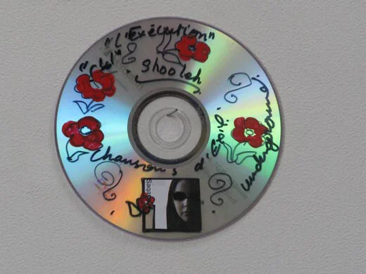 Retravaillés sur les CDs récupérées, ils contiennent les images repeint particulièrement sur les visages. Les CDs des musiques Under graound en Iran, n’ayant pas l’autorisation d’être diffusé, ne tiennent aucun imprimé portant les noms et les images des compositeurs. Comme un CD vierge, ils sont sans identité.